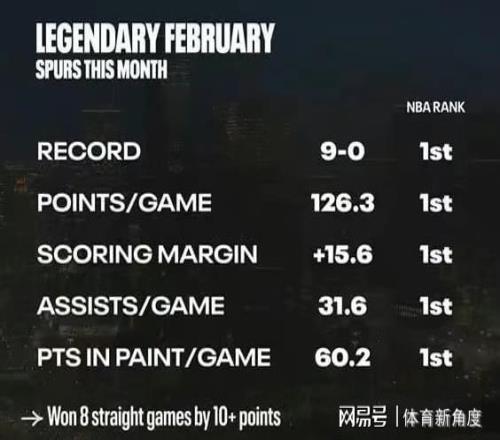 馬刺隊當前狀態正佳,自今年二月以來保持不敗紀錄(9勝0負),且多項數據領跑聯盟:場均得分126.3分、場均凈勝分15.6分、場均助攻31.6次、場均禁區得分60.2分。這支充滿活力的青年軍已蛻變為不可忽視的爭冠勁旅,他們上一次問鼎總冠軍還要追溯至2014年的GDP時代。如今,馬刺隊的崛起已成事實,其爭冠前景值得期待。