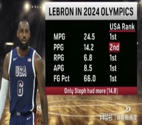 再把時光倒回前兩年,2024年巴黎奧運會那可是熱鬧非凡。詹姆斯在奧運會上那簡直就是“超級大魔王”般的存在,開幕式上,他昂首挺胸地舉著美國隊的旗幟,那仿佛整個世界都在他腳下。而且,他還榮獲了美國隊最佳運動員的稱號,就像游戲里的MVP一樣閃耀。在賽場上,他場均上場24.5分鐘,妥妥的隊內“勞模”第一名;場均能砍下14.2分,是隊里的得分“二把手”;場均抓下6.8個籃板,籃板王非他莫屬;場均送出8.5次助攻,傳球大師的名號可不是白叫的;投籃命中率高達66%,這命中率,就像開了掛一樣準。