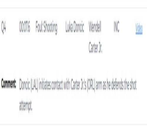 第三次漏判發(fā)生在距離比賽結束還有7.6秒。東契奇在防守小卡特的投籃時,主動用身體接觸對方手臂。這是一次漏吹的防守犯規(guī),小卡特把球打進,本該加罰一次,裁判沒有響哨,這次漏判是湖人獲利,魔術吃虧。