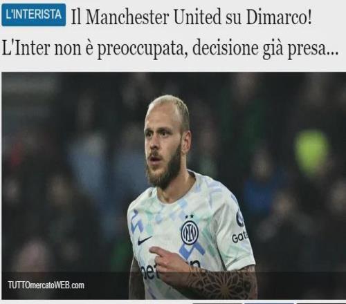報道稱,曼聯愿意為28歲的迪馬爾科支付5000萬歐元的轉會費,但國米明確告知紅魔,這名邊路多面手是非賣品。