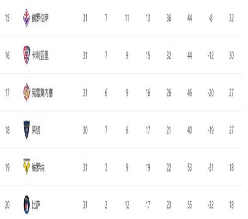 主場作戰(zhàn)的比薩又?jǐn)×耍頌楦卑嚅L的他們,保級形勢進(jìn)一步惡化,聯(lián)賽30輪僅2勝的他們,已經(jīng)深陷降級泥潭,防線漏洞百出,幾乎看不到翻盤的希望。