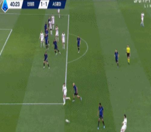 比賽僅僅開打1分鐘,國米就完成致命一擊,后場長傳撕開防線,馬庫斯·圖拉姆右路推進(jìn)橫傳,勞塔羅拍馬趕到,一腳爆射破門,國米1-0,閃電開局。