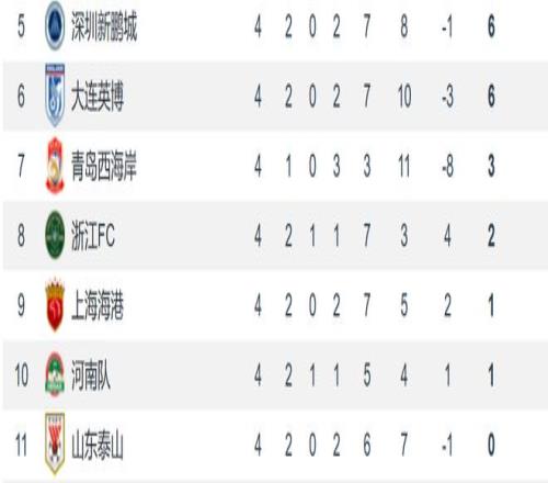 幾支老牌強隊的表現也各有不同,山東泰山在聯賽前2輪連勝遼寧鐵人和北京國安之后,迎來了一波2連敗,這也讓他們的排名無法更進一步,排名聯賽第11的位置。海港則是在戰勝了云南玉昆之后,終于將積分從負分轉正,來到了1分,目前排名聯賽第9的位置。北京國安和上海申花目前仍然積分為負分,排在聯賽下游的位置,尤其是申花,雖然聯賽保持不敗,但是仍然以-2分排名倒數第3。