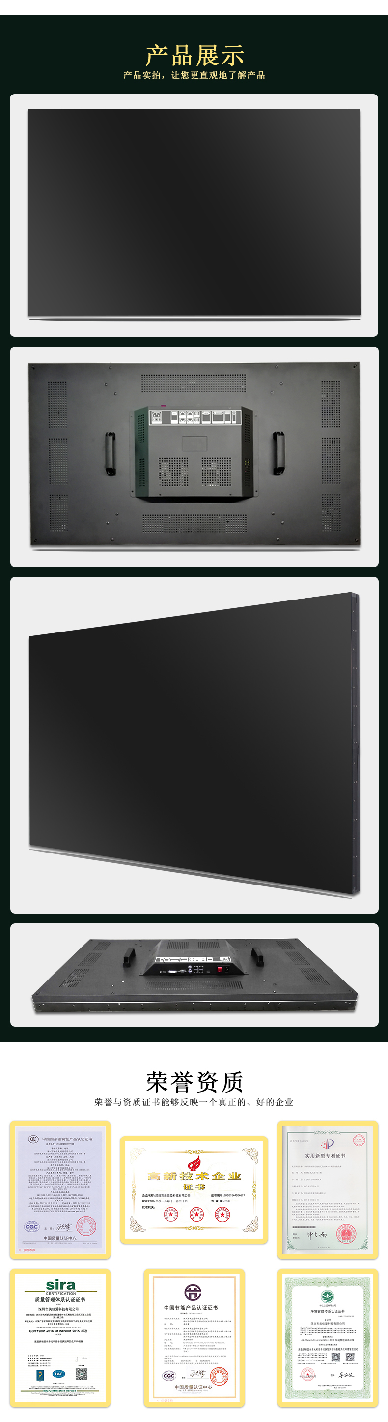 【美佳愛(ài)-4k液晶拼接屏生產(chǎn)廠家電話400-997-9971】LG49寸液晶拼接屏-拼縫8mm產(chǎn)品通過(guò)ISO9001_3C_節(jié)能認(rèn)證等30多項(xiàng)認(rèn)證,主營(yíng)LG/京東方/三星大屏幕電視墻,其尺寸有32寸40寸43寸46寸49寸55寸65寸75寸液晶拼接單元,也有曲面,弧形,柔性,無(wú)縫LED顯示屏,顯示器,超窄邊高清監(jiān)視器,提供企業(yè)展廳展示,KTV,酒吧,會(huì)議室,視頻監(jiān)控系統(tǒng)解決方案設(shè)計(jì)-報(bào)價(jià)-安裝施工-售后超窄邊維修等服務(wù)